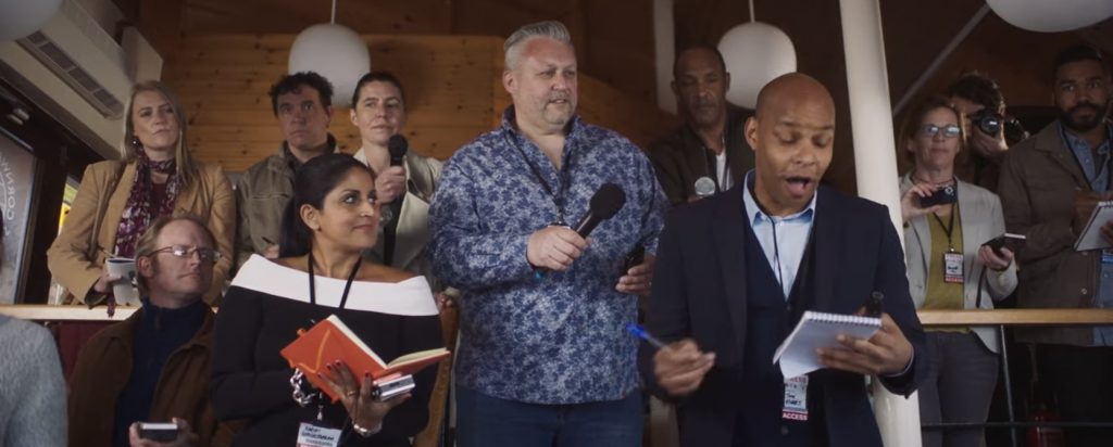 В сиквеле есть многое, значительно сужает возможности сюжета. Парни стали старше, у них был контракт на запись, а теперь его нет. Причина? Актеру Дэниелу Мейсу хватило здравого смысла не вернуться в качестве разведчика талантов из вымышленной компании A&R, который толкает хор из десяти мужчин к славе. У них был отличный тенор, но он переехал в Австралию. И теперь лидер и солист Джим (Джеймс Пьюрфой) все чаще беседует со своим отцом Яго (Дэвид Хейман) в воспоминаниях и галлюцинациях. Потому что папа умер в первой части. Все, что пытаются сделать авторы фильма - это рассмешить зрителей сценами прослушивания на позицию нового тенора. Например, какой-то паренёк, в надежде получить место исполняет хит In the Navy культовой гейской группы Village People. А сцена «испытания славой» содержит радио-чат с бывшим ведущим Top Gear Крисом Эвансом, и это проходит так скучно, как и можно было ожидать. В этом же стиле в фильм вводится некогда «дикая» рокабилли-певица да ещё и алкоголичка Обри Флинн (Имельда Мэй - справедливости ради, довольно хороша). А затем все происходит как в стандартных американских ромкомах о музыкальных звёздах. Они вместе побеждают зелёного змия и отбираются на фестиваль Гластонбери….