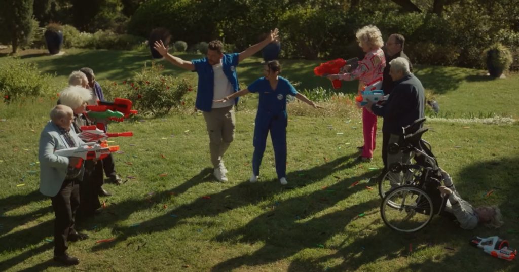 Но приходит беда, откуда не ждали: коррумпированные чиновники хотят закрыть дом якобы из-за нарушений санитарных норм. К счастью, вовремя подоспеет приглашение от некоего владельца приморского клуба для престарелых Bel Azur провести лето среди пальм и морских пейзажей, и обрадованная ватага седовласых отправляется в автобусе на благословенный Лазурный Берег.