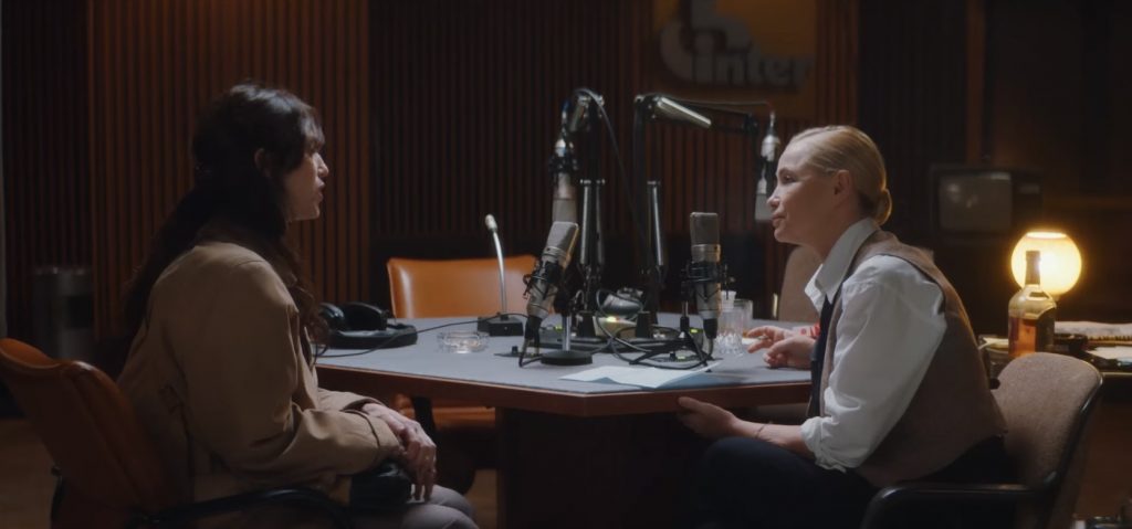 Радиопередача, в производстве которой помогает Элизабет, называется «Пассажиры ночи». Это душеспасительное разговорное шоу, в котором французы могут позвонить в прямой эфир и излить все свои горести и страдания. В сумерках проще вести откровенные беседы, а слушатели кажутся не такими страшными, наоборот, морально поддерживают, сидя где-то далеко у своих радиоприёмников. У ведущей Ванды Дорваль (Эммануэль Беар) есть прототип - легендарная журналистка Маша Беранже, которая 30 лет вела передачу «Алло, Маша». В этой доверительной обстановке происходит знакомство матери семейства и Талулы (она пришла на передачу) - в неё сразу же влюбляется застенчивый сын-поэт. Маттиас, Жюдит и Талула пробираются на сеанс фильма «Ночи полнолуния». Вскоре 25-летняя Паскаль Ожье, сыгравшая главную роль в той картине Эрика Ромера, скончалась от передозировки героина. Её судьба становится предостережением для Талулы, но это совершенно не значит, что печальный конец жизни талантливой актрисы отвадит от наркотиков другую девушку. Херс с большим уважением относится к творчеству Ромера и хочет, чтобы «Пассажиры ночи» были продолжением линии этого французского режиссёра - ламповым разговорным фильмом, в котором большие человеческие трагедии укромно спрятаны в подтекст.
