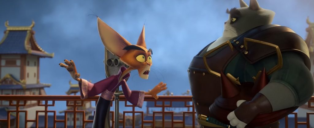 ВПЕЧАТЛЕНИЯ И АКТЕРЫ: картина Роба Минкоффа - анимационная пародия на вестерн Мела Брукса «Сверкающие седла» 1974 года. Сюжетная канва отчасти сохраняется: в оригинале афроамериканец шериф Барт - теперь пес Хэнк, который тоже отличается от остального населения кошачьих, - отправляется по поручению в соседний городок, чтобы избавить его от коренного населения, а затем снести. Но место действия фильма перенесли с американской границы в феодальную Японию, где живут говорящие кошки, среди которых есть самураи, мирные жители, ниндзя, сегун и другие чины. От вестерна Брукса, кажется, остались только завязка и лошадки, которых ловко седлают кошки и пес-самурай, что выглядит довольно комично.