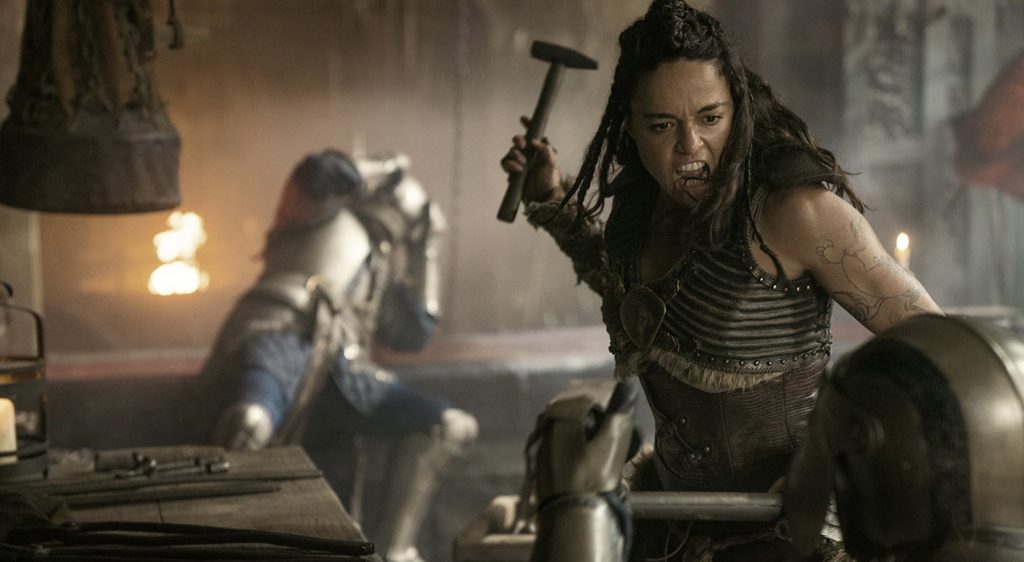 21-летняя Софи Лиллис («Оно») привносит в фильм разум и элегантность. Ее героиня, друидша Дорик, является мозгом операции - она невозмутима и честна.