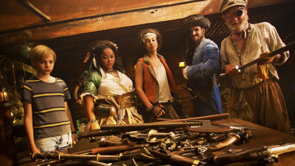 О ЧЕМ КИНО: пиратская семейная пара Бландербассов провела значительную часть жизни в плаваниях и сражениях со своим главным врагом Кривым Корнелиусом. Но у супругов родился ребёнок, и они решили оставить бои и приключения, предпочитая с тех пор бегать от злодея. Однажды Бландербассы селятся в небольшом и очень скучном городке Ландсборо по соседству с домом юного Майкла. Его семья с уважением относится к новым жителям, пусть и таким странным. А вот другие обитатели Ландсборо не слишком-то рады гостям...ВПЕЧАТЛЕНИЯ И АКТЕРЫ: наследие знаменитого капитана Джека Воробья из «Пиратов Карибского моря» всё никак не отпускает киноделов. Десятки режиссёров пытаются придумать столь же харизматичных пиратов, чтобы заставить зрителя цитировать их и бесконечно радоваться шуткам. Вот только иногда они будто забывают придумать сам сюжет, в котором должны существовать их собственные Джеки Воробьи.Именно так и выглядят «Пираты по соседству». Ведь в основе этого фильма лежит самая банальная комедийная история о беспокойной семейке, переехавшей в тихий город (вспоминаем хоть «Соседей» с Джоном Белуши, хоть мультсериал про Гуфи). И, строго говоря, сама по себе эта идея вполне неплоха и даже вечна. Как и десятки лет назад, люди не воспринимают тех, кто отличается от них. И на фоне первого неприятия взрослых дети моментально находят общий язык. Очевидная мораль: нужно быть более открытыми и не считать что-то чужеродное по умолчанию плохим.Вот только создатели «Пиратов по соседству» настолько топорно следуют канонам подобных сюжетов, что в этой истории буквально не за что зацепиться. Есть положительные герои, есть злодей без особой мотивации, а потом появляется просто злодей «по умолчанию». Конечно же, к финальной трети добавляют мрачности и переоценки. Но всё это так легко предсказать, что удивиться чему-то или хоть немного привязаться к персонажам никак не выходит. Но главная беда фильма даже не в этом. Проблема в том, что именно «пиратская» составляющая кажется здесь какой-то искусственной. Она совершенно нелогичная, но недостаточно фэнтезийная или хотя бы смешная, чтобы оправдать все нестыковки. Когда во вступлении показывают бой кораблей (с ужаснейшими декорациями и графикой), возникает первая мысль, что всё это - сон или фантазия. Но нет, такова реальность картины, которая плохо стыкуется с тем, что будет происходить дальше.С юмором в заявленной комедии и вовсе тяжело. За него по большей части отвечает дед в семье пиратов, который нужен исключительно для гэгов. Может развеселить сцена, где новые жители пытаются устроиться на работу, и ещё пара подобных моментов. Все они построены по одному принципу: диковатые пираты сталкиваются с современным миром. В остальном же веселье пытаются создавать просто нелепым поведением и ужимками, что выглядит слишком уж дёшево даже для такой простой работы. Единственное, что может оправдать «Пиратов по соседству», - нацеленность исключительно на детскую аудиторию. Разумеется, это не отменяет всю нелогичность повествования и тем более слабые съёмки. Просто позволяет картине быть чуть наивнее по сюжету и моральной составляющей. Она условно разделена на две связанных истории. Первая - противостояние местных жителей новым соседям, вторая - дружба Майкла с пиратом Билли.Как раз «детская» часть выглядит более 