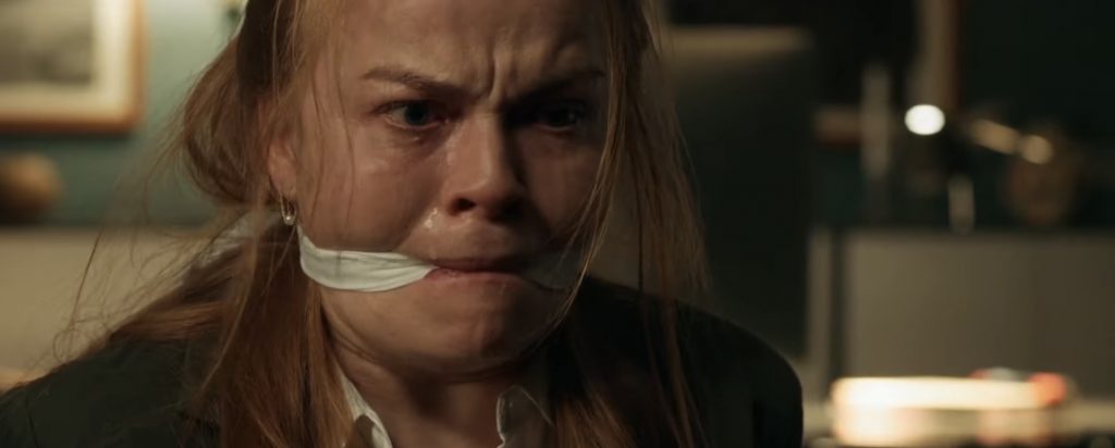 Основная часть ленты происходит в камерной обстановке - в кабинете Сюзанны, которая осталась взаперти с психопатом. От щекочущего нервы напряжения до запредельного страха - именно эта глава вызывает больше всего эмоций. Герои пытаются перехитрить друг друга посредством обычного диалога, и весь саспенс держится исключительно на словах. Психолог и клиент быстро меняются местами: Марк не хуже профессионала копается в прошлом собеседницы, чтобы задеть незажившую рану. Благо, сценаристам удается сохранять уровень беспокойства до тех пор, пока осторожный голос Сюзанны не переходит в крики и плач.