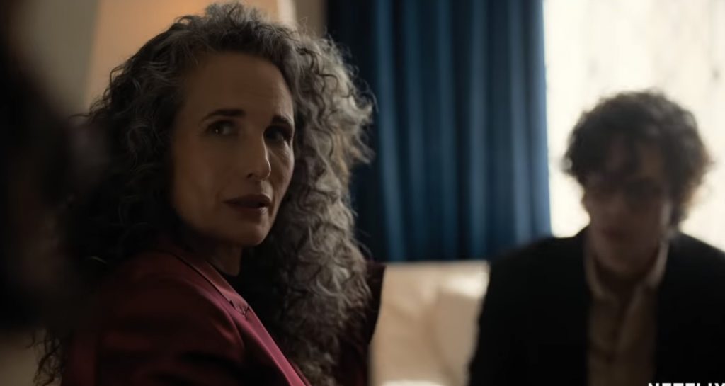 Виктория (Энди Макдауэлл) появляется на пляже вся в пастельных тонах. Макдауэлл выглядит роскошно, а ее снобистская героиня неожиданно проявляет неподдельную заботу о дочери.