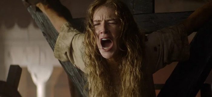Обвиненной в колдовстве героине грозит костер. Она в застенках, ей чудятся объятия дьявола, похожего то на клыкастое чудище, то на огромного кузнечика, то на утраченного мужа. Ей является мама, давно спаленная жаром инквизиции, и еще много чудовищ, порожденных сном разума по имени вера. Непокорную Грейс насилуют, бьют кулаками, локтями и ступнями, ее интимное раздирают ржавыми орудиями пыток, рубаха залита кровью - но ангельское лицо по-прежнему годится для рекламы салонов красоты, а прическа несминаема, как у раннего Джеймса Бонда. Актриса громко кричит, делая вид, что ее чрево терзает невыносимая боль, но не нужно проницательности Станиславского, чтобы ей не поверить.