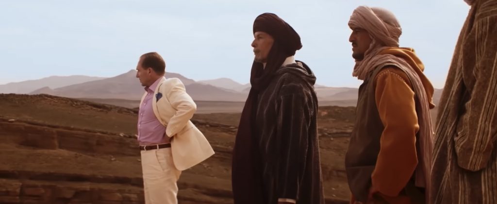 О ЧЕМ КИНО: Марокко. Супружеская пара, британец и американка, давно уже надоели друг другу. Дэвид Хеннингер (Рэйф Файнс) - невыносимый алкоголик, изрыгающий ужасные, фанатичные расистские комментарии, к большому огорчению своей, младшей по возрасту, жены Джо (Джессика Честейн). Они едут на вечеринку в роскошном поместье, принадлежащем эксцентричной гей-паре Ричарда Гэллоуэя (Мэтт Смит) и Далли Марголиса (Калеб Лэндри Джонс). Проезжая через пустыню, богатые лондонцы, Дэвид и Джо случайно сбивают местного подростка. Опоздав на вечеринку, пара пытается скрыть инцидент и договориться с местной полицией. Но когда Абделла (Исмаэль Канатер), отец мальчика, прибывает в поисках справедливости, он озвучивает только одну просьбу - Дэвид, который и был за рулём, должен отправиться с ним в пустыню, чтобы похоронить его сына по местным обычаям. Освободившись от опеки мужа, его жена пускается во все тяжкие…