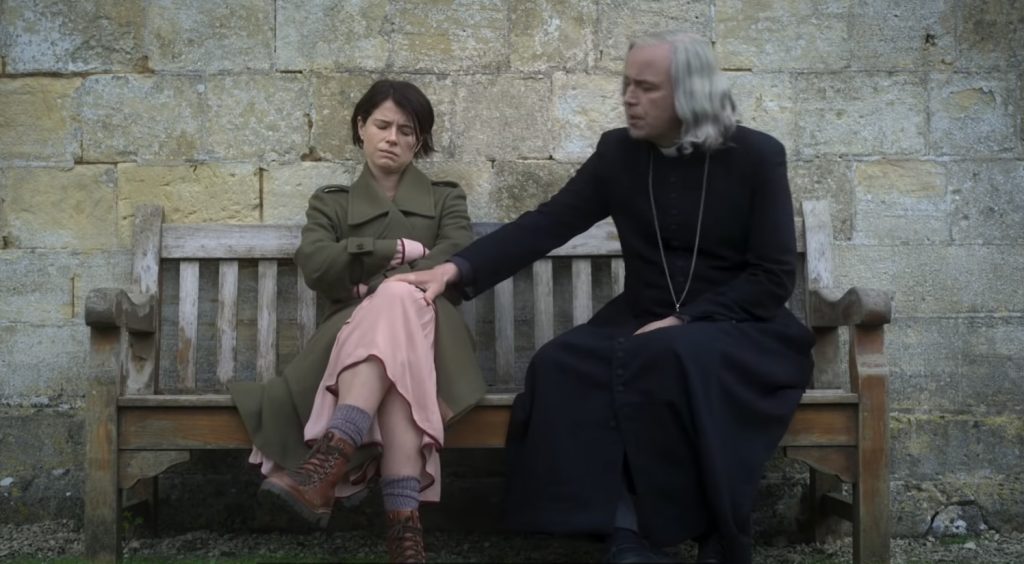 Эти персонажи, от непослушного подростка до похотливого священника, превращают пребывание скорбящей Харпер в идиллическом британском поместье в настоящий ад. Они эмоционально терроризируют вдову способами, которые сначала кажутся тонкими, а затем становятся сюрреалистично жуткими.