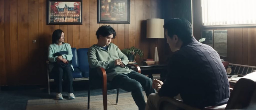 На протяжении большей части «Роузмида» Ирен настаивает, что с Джо всё в порядке, и именно это смутное желание нормальности загоняет Ирен в ловушку. Прежде чем передать всю глубину своего отчаяния, режиссер тщательно обдумывает, как наладить ритм жизни этой матери. Когда мы впервые встречаем Ирен, она забирает сына с еженедельного сеанса терапии. Его психотерапевт, доктор Сюй (Джеймс Чен), говорит, что присутствие Ирен может помочь Джо, которому через несколько месяцев исполнится 18, почувствовать себя увереннее в своём выздоровлении. Ирен мягко отказывается, настаивая на том, что Джо и так возвращается к своему прежнему «я».