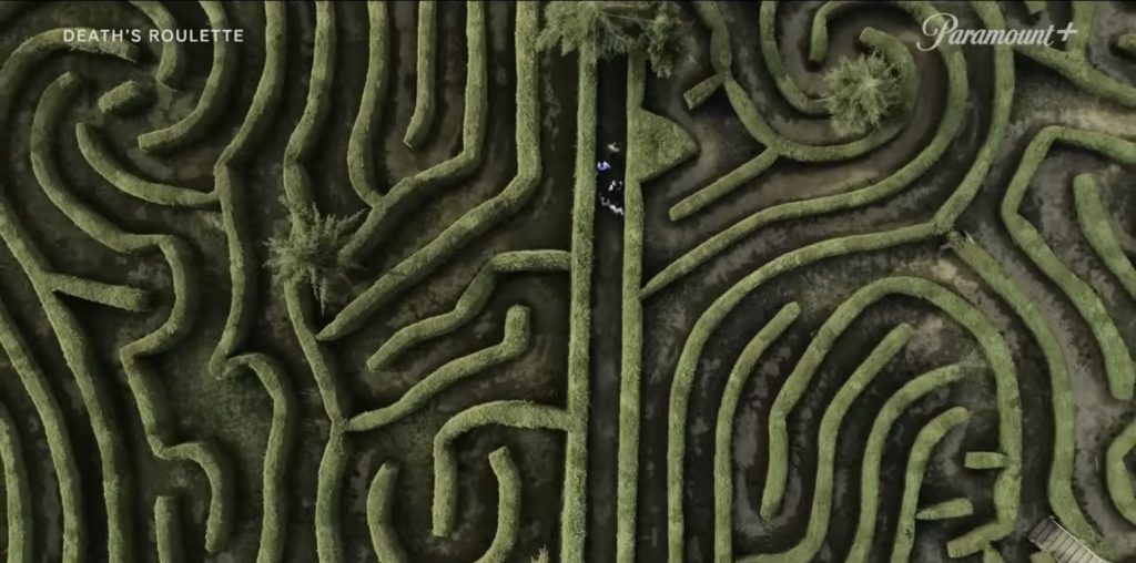 Связь между персонажами обнаруживается довольно рано и, прямо скажем, это вызывает нервный смех. Двери в особняке постепенно открываются, а герои путешествуют по дому, вступая в словесные перепалки и мордобой. Не становится неожиданностью и то, что убийца скрывался в образе одного из пленников. Об этом можно было догадаться задолго до «шокирующего» разоблачения. Оказывается, что семёрка была выбрана неспроста. У всех у них есть скелеты в шкафу - об этом они не хотят вспоминать и нести ответственность. Формула этого фильма известна со времен классического романа Агаты Кристи «Десять негритят». Из нового в «Рулетке смерти» - «гостеприимный» хозяин не будет сам убивать гостей, а предоставит заняться этим им самим.