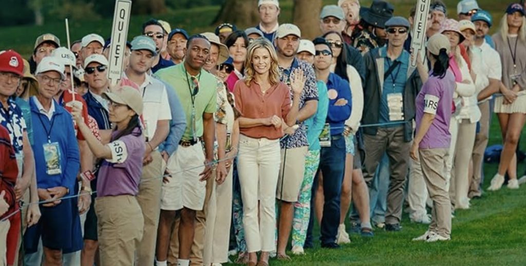КАК ЭТО ВЫГЛЯДИТ: в фильме отдают дань памяти ушедшим из жизни актёрам - Бобу Баркеру, Карлу Уэзерсу и Фрэнсису Бэю, а герои буквально «прощаются» с прошлым через короткие реплики и архивные фото. Визуал картины напоминает ленту человека в соцсетях, который любит ностальгировать. Зелёные газоны, неоновые вывески и технологический гламур (в духе стартапов Кремниевой долины) заполняют 80% экрана. Здесь поле для гольфа - одновременно и спортивная арена для состязаний, и площадка для пафосного перформанса.