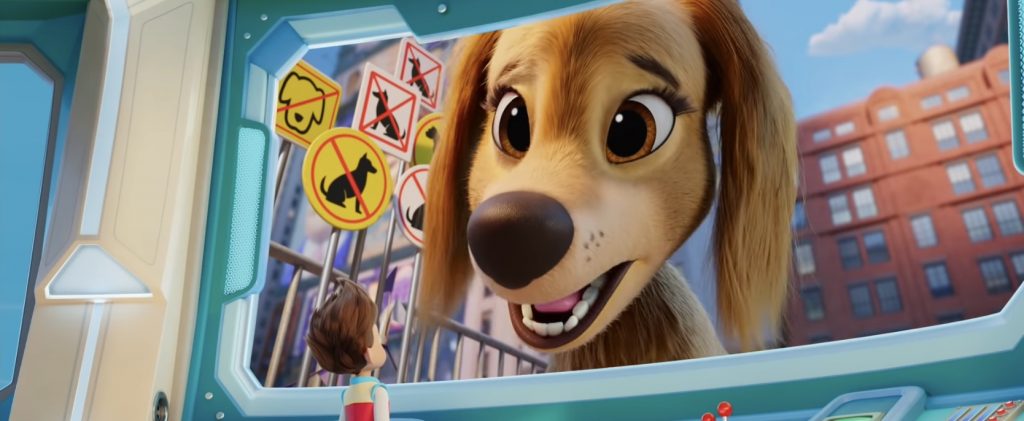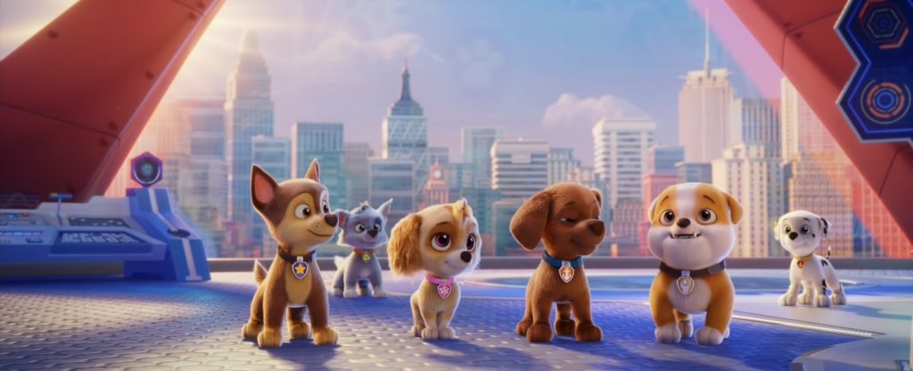 Создатели фильма с большим мастерством создают вселенную, в которой собаки разговаривают с людьми, 10-летний ребенок водит фургон, а новому офису «Щенячьего патруля» позавидуют самые крутые международные корпорации. Компьютерная графика придает фильму многослойную, иногда мрачную, эстетику, которой так не хватало в телешоу. Интенсивность действия идеально подходит для малолетней публики, при этом дух сериала сохраняется, а жизненные уроки остаются понятными для юной аудитории. В то время как каждый из щенков получает свой собственный выход, главное внимание в фильме уделяется Чейзу и Либерти. А второстепенные персонажи - недалёкий Буч (Евгений Гашенко, Рэндолл Пак), глуповатый телерепортер Марти (Егор Гордеев, Джимми Киммел) и высокомерная пуделиха Делорес (Александра Пустовит, Ким Кардашьян Уэст) отвечают, в основном, за любимый малышами суматошный юмор. Для взрослых же главным героем окажется подлый мэр Хамдингер (Рон Пардо), который выглядит как воротила бизнеса без монокля, а каждое его высказывание наполнено восхитительной иронией…