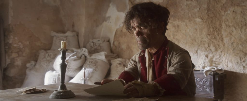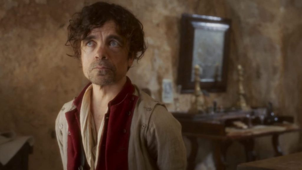 Миниатюрный рост Динклэйджа служит той же цели, что негабаритный нос персонажа из пьесы - Сирано выглядит аутсайдером на старте, и должен компенсировать свои недостатки остроумием и душевностью (это похоже на то, каким его сыграл  Жерар Депардье в экранизации Жан-Поля Раппено). Главного героя так часто называли «уродом», что оскорбление потеряло свою остроту. Начальная сцена в театре прерывается появлением Сирано, который останавливает актера в середине монолога, а затем побивает его вначале остроумием, а затем и шпагой. Как заявляет верный друг Сирано, Ле Бре (Башир Салахуддин), это глупое выступление должно было привлечь внимание Роксаны (Хейли Беннет), которая находится рядом с герцогом де Гишем (Бен Мендельсон). При этом характер Роксаны виден с самого начала: «Я не домашнее животное, я ничья жена и ничья женщина». Судя по первой песне фильма Someone to Say, Роксана больше, чем просто абстрактный объект привязанности Сирано. Она независимая женщина, которая знает, чего хочет - или, по крайней мере, она думает, что хочет, когда влюбляется в одного из новобранцев Сирано, Кристиана (Келвин Харрисон-мл.).