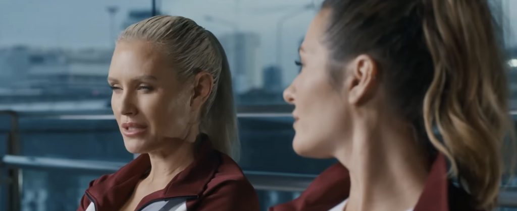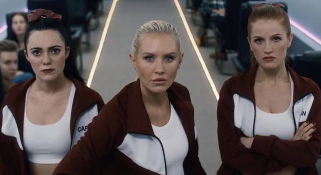 С помощью своей грубой силы он справляется с жестоким обращением агрессивно настроенных охранников. «Скоростной поезд» довольно медленно разгоняется и в это время мы немного узнаем о Скарлет и Тессе, причём Тесса (Скаут-Тейлор Комптон), конечно же, бывшая военная со специфическими навыками. У двух их подопечных девушек отношения не складываются. И, правда, что может быть общего у простоватой Мэри (Лиана Рамирес) и Хизер (Джейд Паттери), техническим гением из неблагополучной семьи.