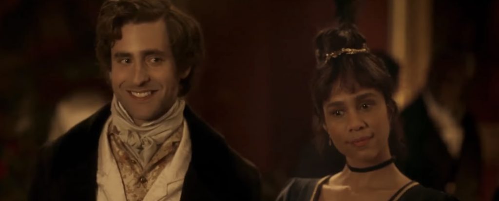 Оливера Джексона-Коэна, что играет беззаботного и немного сумасшедшего кузена лорда Кэссиди: тот постоянно испытывает серьёзный страх перед лошадьми и неправильно произносит имена греческих философов. Зажигает по полной актриса Эшли Пак - в роли яркой светской львицы мисс Герти Ковингтон она появляется всего в нескольких, зато запоминающихся эпизодах. Она ведёт себя вызывающе, носит репутацию взбалмошной и сумасшедшей, и не скрывает, что дважды была замужем и ищет третьего раунда.  Герои чаще ведут себя по-современному, поэтому здесь вы не почувствуете ни манер, ни нравов, ни даже сам дух эпохи (сравните для примера с теми же экранизациями Джейн Остен 90-х годов прошлого века).