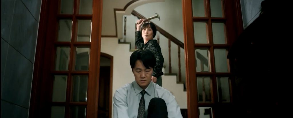 Нельзя сказать, что гендерная принадлежность имеет принципиальное значение: во вселенной «Старухи с ножом» куда больше внимания уделяется проблемам эйджизма, чем возможной несправедливости по отношению к женщинам. И всё-таки разница между привычным образом стареющего героя боевика и Хорнклав (это прозвище носит старушка-киллер) проглядывается в мелочах. В привычке полагаться на ловкость и интеллект там, где мужчина скорее сделал бы ставку на физическую силу. И подобный подход позволяет Мин Гю-дон вносить любопытную изобретательность в насыщенные жестокостью боевые сцены, пусть он и не спасает героиню от травм и ранений. Режиссёр даёт зрителю понять, что для поддержания угасающих сил необходимо прикладывать старания: сцены ежедневных пробежек Хорнклав придают фильму необходимый тон реалистичности. Не сюжетная броня протагониста позволяет героине удерживать навыки на необходимом уровне, а её напористость и осознание своих слабостей.