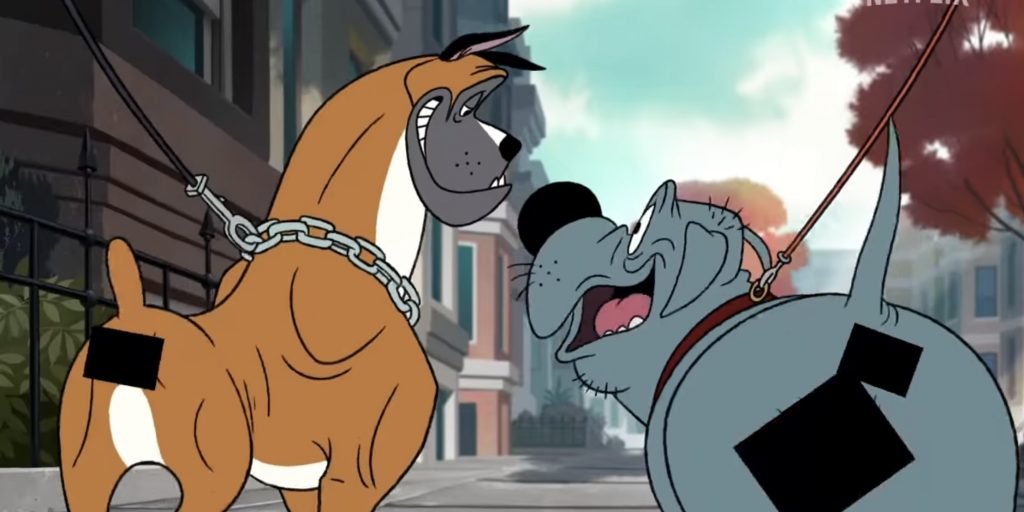 Сложная судьба явно намекает, что с «Стерилизованным» что-то не так. Впрочем, лучше начать с чего-то хорошего. У мультфильма просто безупречная олдскульная 2D-анимация, которая одновременно отсылает к рисовке диснеевского «101 далматинца» и комедийному ритму короткометражек Looney Tunes. Персонажи обладают удивительной пластичностью и экспрессией, а их морды искажаются от каждого слога. Из-за этого создается практически забытое в наше время ощущение неидеальной, но живой и обаятельной анимации, нарисованной от руки. Особенно эффектно она выглядит во время абсурдных погонь или галлюцинаций: создатели вспоминают, что могут использовать безграничные возможности медиума, а не пытаться сделать реалистичное и скучное кино.