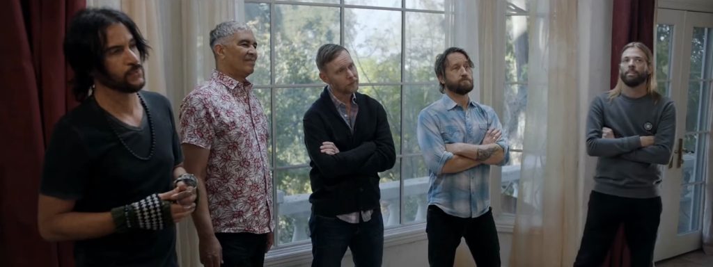 ВПЕЧАТЛЕНИЯ И АКТЕРЫ: Дэйв Грол - экс-барабанщик группы Nirvana, которая в середине 90-х перевернула рок-сцену, сделав новыми небожителями длинноволосых парней из Сиэтла. В последние 25 лет Грол занимается собственным музыкальным проектом - группой Foo Fighters, продолжившей развивать гранж-рок в эпоху, когда музыкальный стиль уже ушёл с передовой. Причём развивать довольно успешно: Foo Fighters успели записать десять альбомов, выпустив в прошлом году последнюю на данный момент пластинку. Единственная омрачающая новость: совсем недавно музыканты попрощались с барабанщиком Тейлором Хоукинсом - он ушёл из жизни в возрасте 50 лет, успев напоследок появиться в «Студии 666». Смерть витает над коллективом как в экранной, так и во вполне осязаемой реальности: таково пересечение, которое волею судеб образовалось во время производства фильма.