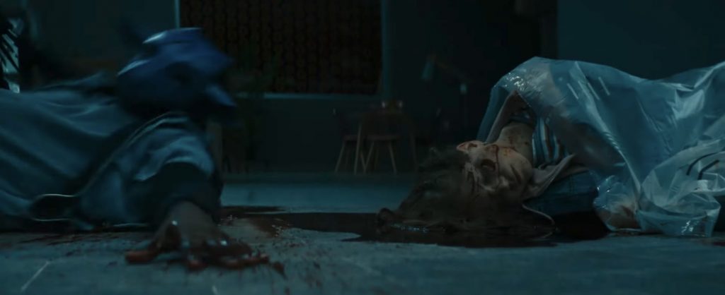 Возможно, представители торговой точки потребовали у режиссеров бережнее отнестись к их собственности и не слишком загадить помещение. Поэтому булькающих фонтанов крови зрители здесь не увидят, но это компенсируется впечатляющими деталями - как, например, лопнувшие кровеносные сосуды в глазах задушенной жертвы.