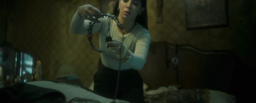 Для некоторого полезного контекста (и для увеличения хронометража тоже!) современная Росарио тратит много времени на поиск в интернете информации об этой религии. Она читает текст вслух, чтобы зрители могли уяснить необходимые для сюжета основы проклятий, желаний, кровавых жертвоприношений животных. Выглядит это как неуклюжее изложение, предваряющее столь же неуклюжие сюжетные повороты. Из этой же оперы - любопытный сосед Джо (Давид Дастмалчян) с его поисками собственной фритюрницы.