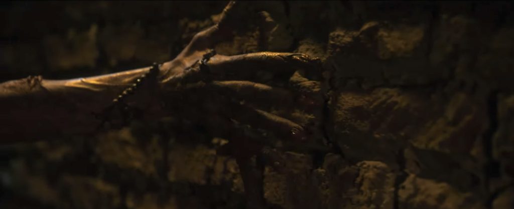 Жилой комплекс, где скончалась бабушка Росарио - убогое место, где постоянно гаснет свет. Это создает подходящие условия для фильма, в котором жуткие размытые фигуры движутся на заднем плане, прежде чем режиссер выводит их на передний план. Вскоре процесс становится повторяющимся, а тягомотину нарушают бестелесные руки, изредка выскакивающие из разных мест. Другой важный момент предыстории заключается в том, что бабушка Росарио, Грисельда (Констанца Гутьеррес) исповедовала религию под названием Пало и порой вела себя очень странно. Когда маленькая Росарио праздновала свое первое причастие в этой самой квартире, бабуля спряталась в спальне и жутко напугала внучку, выскочив из-за кровати с окровавленными руками.