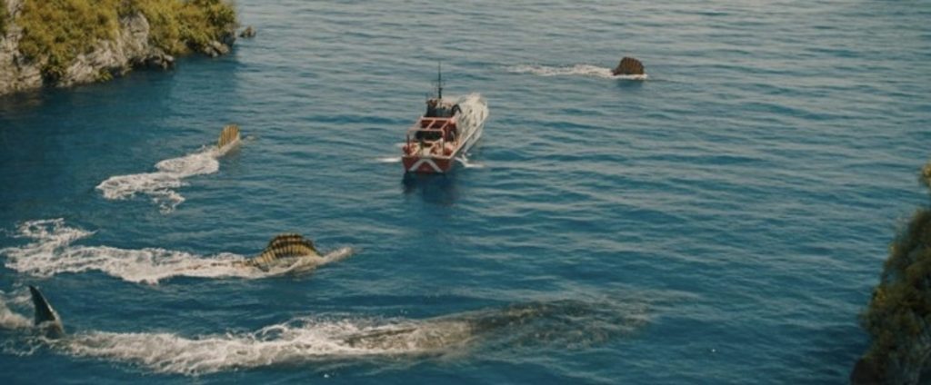 Мы получаем все традиционные моменты в стиле Стивена Спилберга, включая несколько классических медленных поворотов: герои что-то делают, слышат динозавра позади себя (которого зрители могут видеть), а затем медленно поворачиваются, после чего мы переходим к уморительному крупному плану на их ошеломленных лицах.