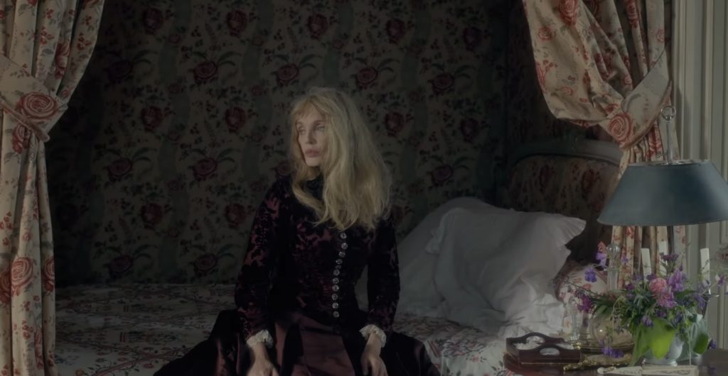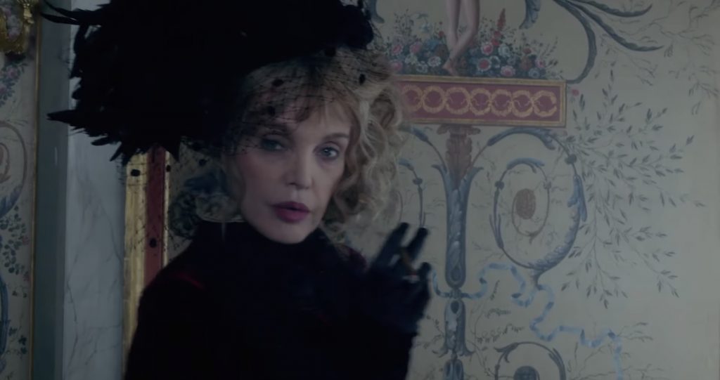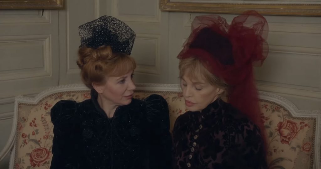 Между парой подобных опереточных сцен куртизанка беседует с маркизой д'Эспар (Жюли Депардье), которой показывает портреты своих бывших любовников. С чашкой чая или рюмкой ликера в руке эти двое обмениваются банальностями: «Какая радость снова тебя увидеть», «У нас была отвратительная весна», «Какая радость найти тебя в этом саду», «Ох, этот подстриженный самшит: какая красота! »… Порой кажется, что мы наблюдаем за двумя маленькими девочками, играющими в куклы.