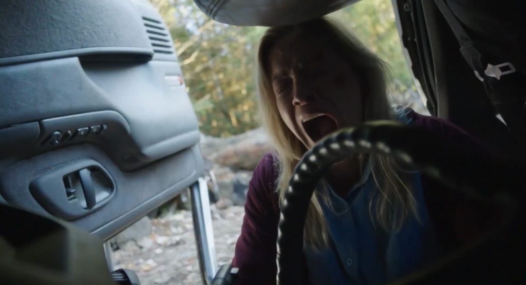 На самом деле, хорошо, что персонаж погружается в галлюцинации этих разговоров с людьми, которых она любит, - потому что остальная часть фильма - это просто хрюканье, пыхтение и крики, когда она изо всех сил старается вынести боль от своих травм. А еще к ней постоянно является маленькая собачонка по имени God (Бог).