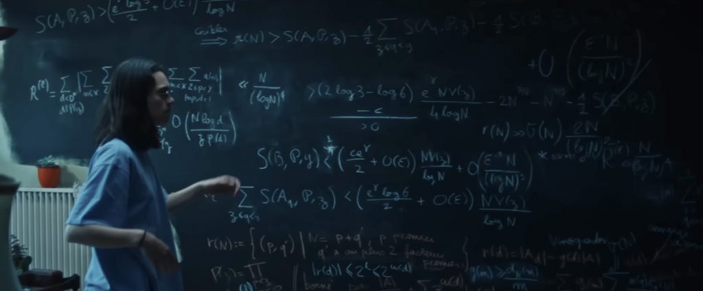 Конечно же, последовательность костяшек маджонга подсказывает Маргарите формулу, которая становится ключом к новому методу доказательства, и, конечно же, за этим следуют бессонные ночи, лихорадочное записывание цифр в тетрадке и пробуждения за столом. Потом героиня красит стены черной краской, так что на них можно писать мелом, а потом, когда проблема Гольдбаха превращается для нее в обсессию (а она, разумеется, превращается), записи покрывают каждый свободный сантиметр в квартире, включая окна, зеркала и рулоны туалетной бумаги.