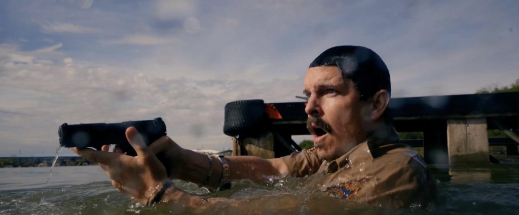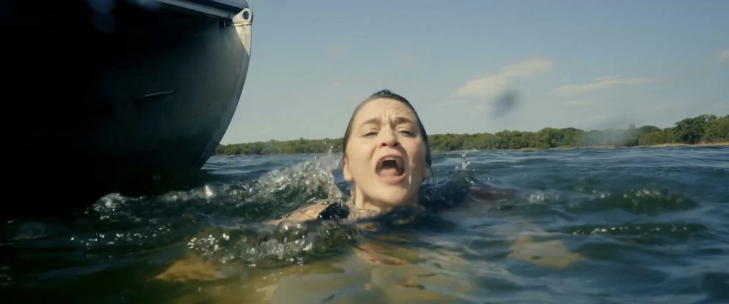 Вот только перед нами совсем другой масштаб. Действие происходит на обычном озере. Это превращает картину в довольно камерный фильм ужасов. Все здесь какое-то маленькое: водоем, городок, и даже акула оказывается всего лишь ребенком, а не отточившим свои зубы убийцей. Охотиться за ней будут на простой моторной лодке, используя для устранения подручные способы. Никаких хитроумных сетей и гарпунов. Первое, что приходит в голову, - вытащить пистолет или пойти в рукопашную, с ножом в руке. Мы видим полностью неподготовленных людей, принимающих скорее импульсивные решения. Правда, это выглядит реалистичнее, чем появление такой рыбы в местном озере.