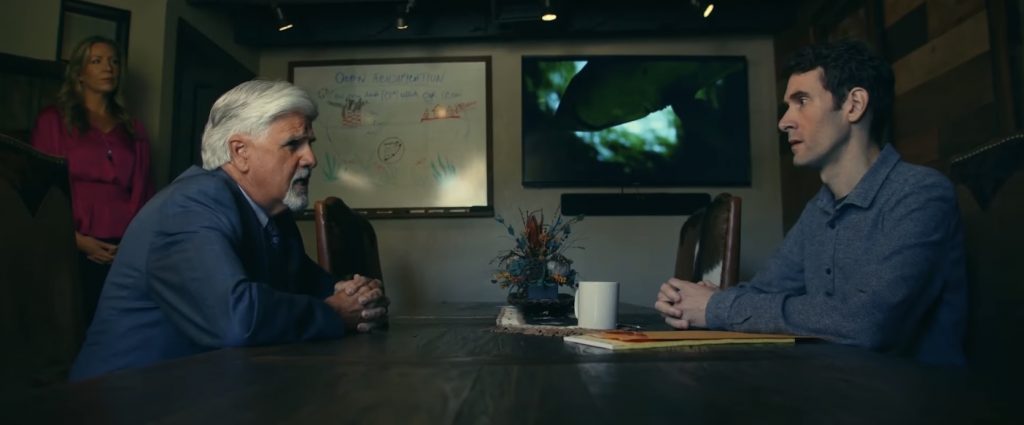 С персонажами все тоже более или менее понятно. Главный герой напоминает не егеря парка, а уставшего от многолетней работы полицейского. Кажется, перед его глазами мелькают постоянные трупы невинных людей и фотографии жестоких маньяков, творивших эти зверства, вгоняющие в депрессию. Хотя объяснение оказывается куда проще: тяжелый развод. Вот и приходится по утрам заливать в свой термос не горячий кофе, а водку, чтобы прожить очередной тоскливый день. Появление акулы-убийцы - неплохой повод взять себя в руки. Особенно когда со всех сторон давит начальство и на выходные приезжает погостить сын-подросток, уткнувшийся в гаджеты и не замечающий отца.