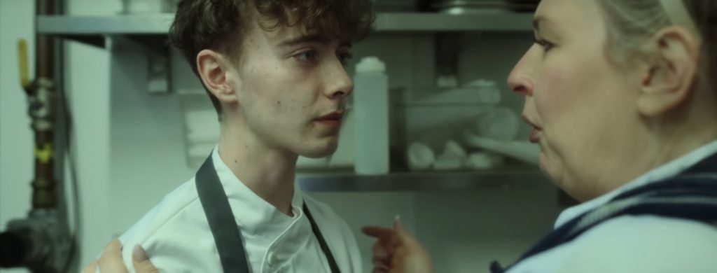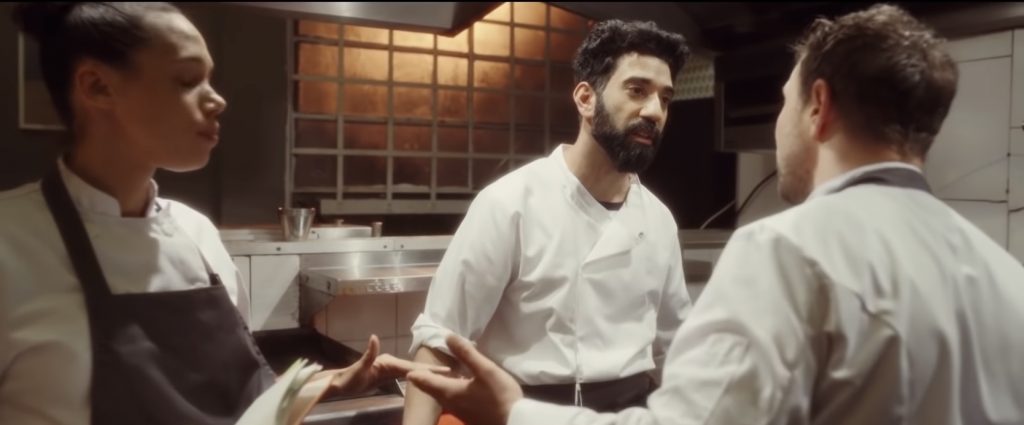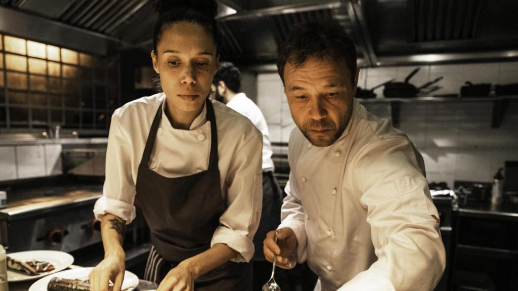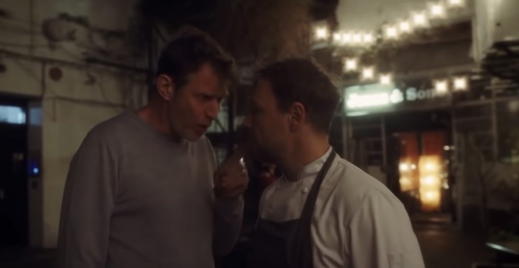 Барантини хорошо понимает, что точно выбранный герой делает весь фильм. Его полнометражный дебют, «Злодей» (2020), тоже рассказывал о фаталисте - правда, чуть более кровожадном и уверенном в себе, чем шеф Энди. Но еще режиссер понимает, насколько важно место действия, пространство, в котором есть жизнь. «Точка кипения» снималась не в павильоне, а в интерьерах настоящего лондонского ресторана Jones & Sons, так что и кухня, и клаустрофобия, и теснота здесь - реальные. А имя героя, Энди Джонс - это имя шефа Jones & Sons, с которым Филип Барантини в свое время работал в лондонском пабе Cat & Mutton, существующем с XVIII века. Да, Барантини говорит, что 12 лет зарабатывал на жизнь, работая шефом, тогда и решил снять фильм о том, чего не видят посетители модных заведений. Стивен Грэм, наоборот, о кулинарии почти ничего не знал, и ему пришлось учиться у настоящих шефов, чтобы выглядеть на экране убедительно. Все проколы его героя, непозволительные для шефа (облизать ложку и тут же снова сунуть ее в миску, где готовится десерт - куда смотрит санинспектор?), объяснимы с сюжетной точки зрения. Энди идет ко дну, у него уже нет сил заказывать продукты, пробовать еду чистой ложкой, разбираться с чужими аллергиями, возвращать долги.