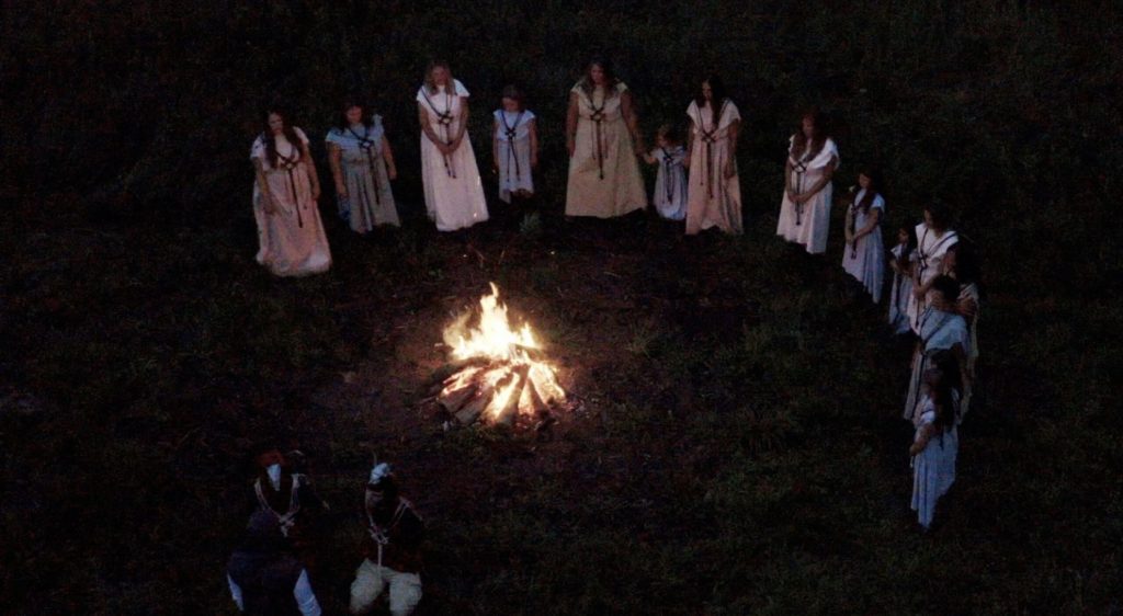 Вторая половина ленты поначалу выглядит инородным телом, неожиданным уходом с маршрута: баллада о взрослении превращается в клаустрофобный триллер о секте с типичными приметами жанра вроде деревянных куколок, селф-харма и зловещего сарая со множеством орудий. Насмотренность и чутье киноделов-дебютантов позволяют пусть и не бескомпромиссно, но все же уцепиться за архитектуру коммуны «Плетеного человека» и «Солнцестояния» и по следам старших братьев в жанре представить свой лоукостер-вариант вторжения в закрытое общество.
