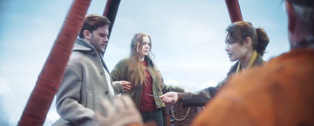 К тому моменту, когда Эмми (Хера Хильмар - «Смертельные машины») и Зак собираются отправиться в живописный полет на воздушном шаре - что, по словам их гида Гарри (Келси Грэммер), является самым безопасным способом, в воздухе уже витает зловещая атмосфера. Навязчивые текстовые сообщения Юлии, в которых она пытается заставить Зака заплатить ей, достигают кульминации, когда она появляется на посадке в воздушный шар. Забавно, что Зак и Юлия обмениваются колкостями на глазах у Гарри и Эмми, но эти двое даже не замечают, что что-то может пойти не так. В динамике отношений между персонажами сценарист Энди Мейсон находит удивительную золотую середину. Ольга Куриленко удачно передает неуравновешенную натуру своей Юлии. Остается вопрос: могла ли Юлия лгать и попробовать взять парня на понт в присутствии жены, или же у нее действительно была интимная связь с Заком? Даже если ответ не вызовет удивления, Джереми Ирвин изо всех сил старается показать Зака ​​чем-то большим, чем просто пустой карикатурой, какой он предстает на бумаге. Хера Хильмар неплохо справляется с ролью Эмми и на какое-то время принимает на себя основную нагрузку.