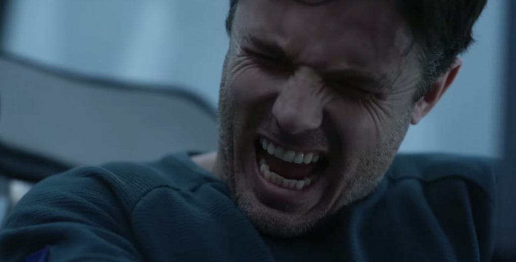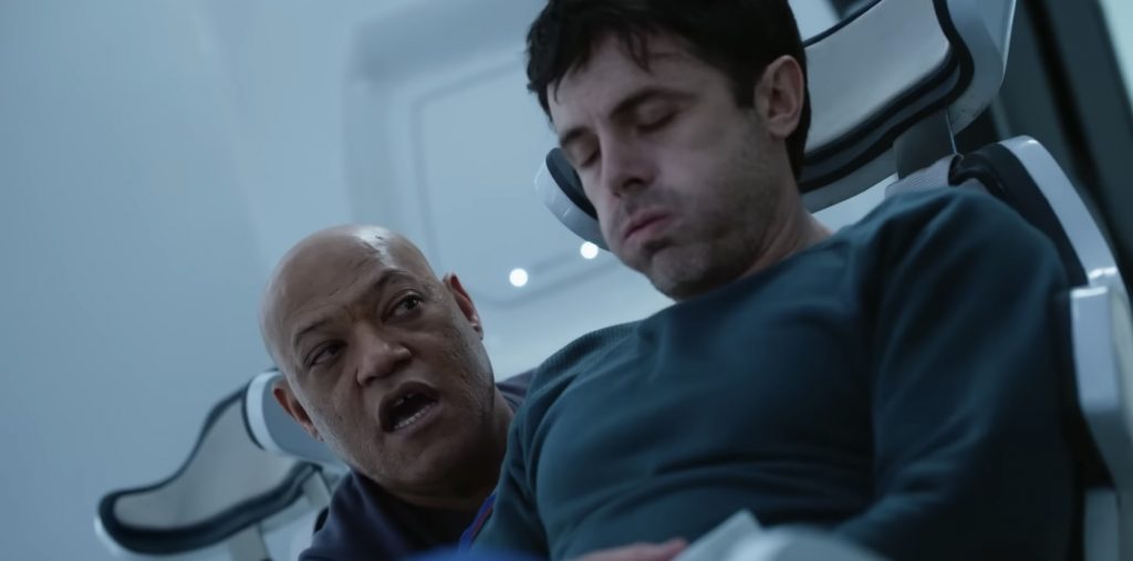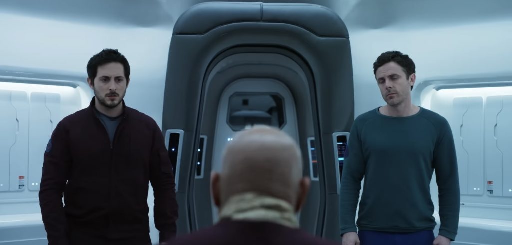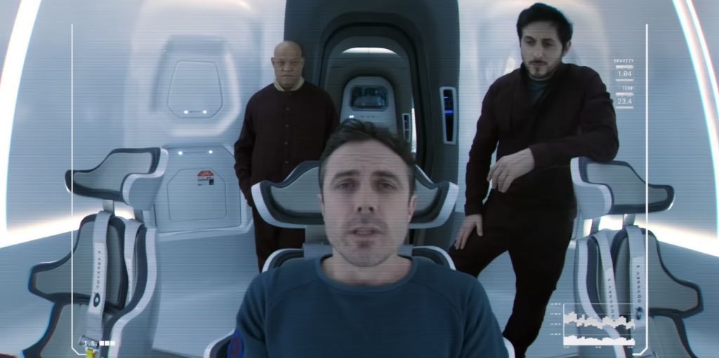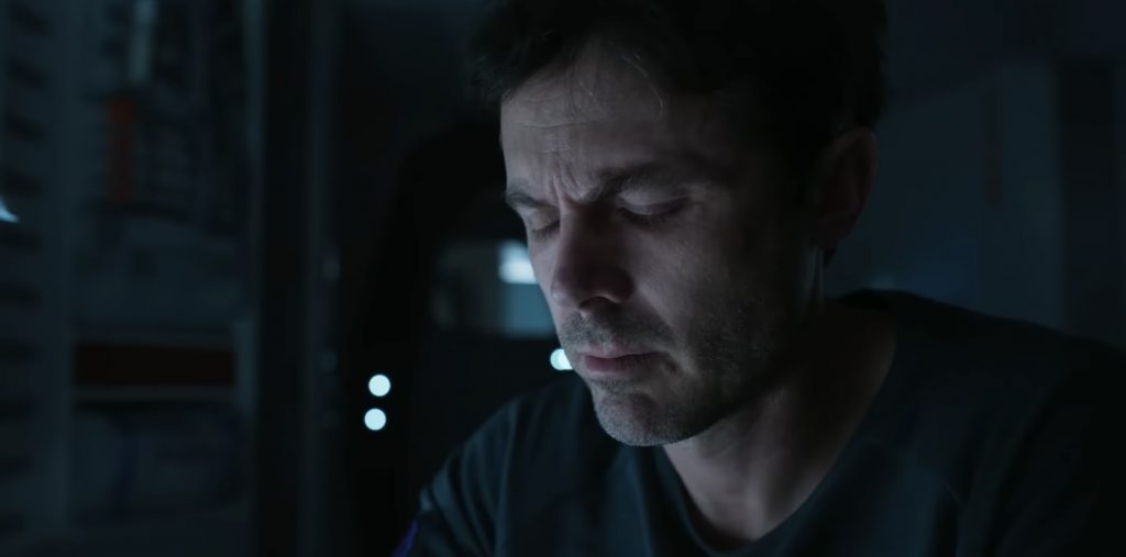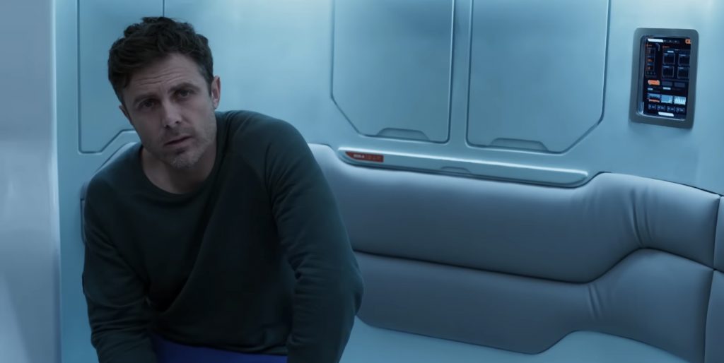 Учитывая, что это в основном триллер о трех парнях, пытающихся не сойти с ума, фильм постоянно отвлекается на флэшбэки из жизни Джона на Земле. Сами по себе сцены, в которых он влюбляется в коллегу из НАСА Зои (Эмили Бичем), приятны; у них хорошая химия, и это дает Кейси Аффлеку шанс продемонстрировать более человечную сторону своего персонажа, который проводит большую часть фильма в полудреме. Джон снова и снова просыпается от гиперсна, каждый раз слыша одну и ту же болтовню от роботизированного голоса. Этот намеренно повторяющийся ритм явно призван вовлечь аудиторию в усиливающееся чувство дезориентации человека, а флэшбэки нарушают его. Учитывая, что они не добавляют ничего особенно важного к фильму, это кажется плохой идеей. Сценарий Р. Скотта Адамса и Нэйтана Паркера, в значительной степени основан на повороте, о котором зрители почти наверняка догадаются заранее, но основная фишка состоит в изображении трех предположительно разумных мужчин, действующих довольно неразумно. Что-то из этого можно отнести к их шаткому психическому состоянию, но большая часть кажется просто очень неуклюжим рассказом.