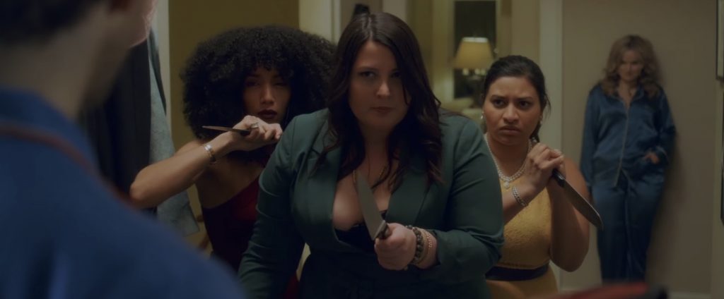 Наступает хаос, когда Дэйв делает то, что обычно делают демоны: пытает, убивает и овладевает телами людьми. Все это пронизано замечательными отсылками к фильмам «Экзорцист», «Экзорцист III» и «Битлджус». У девчонок наступают по-настоящему тревожные моменты, когда они почти сдаются дьяволу, в то время как Дэйв грубо демонстрирует свою власть над ними. Но каждый из этих моментов подкреплен саркастическим замечанием, лукавой шуткой или фарсовыми характеристиками организаторов свадьбы или матери невесты. Этот баланс - редкая находка в комедиях ужасов, и смотреть такое всегда весело. Дэйв, наконец, загнан в угол, когда Кейтлин использует свою репутацию шлюхи в своих интересах и крадет у Кортни еще одного потенциального мужа. Благодаря этому сестры начинают восстанавливать свои отношения, Дэйв оказывается под властью Кейтлин, а Кортни сможет выйти замуж….