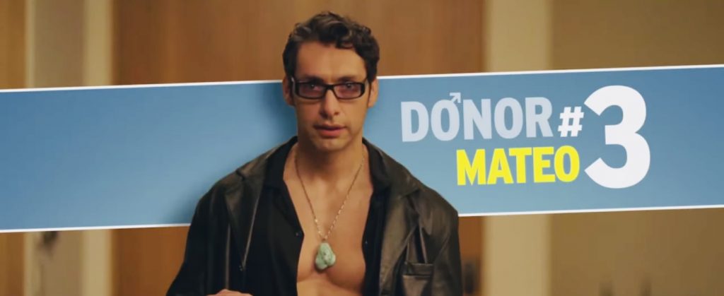 Поле любовных ристалищ в виде роскошного загородного дома было готово, именинник Джефф (Роб Кордри) согласился стать на время сводником - все предпосылки для безумной комедии у Тома Харпа имелись! Но остроумными текстами «Вечеринка доноров» не блещет. Поэтому фильм идет по банальному пути нескольких фильмов 60-х с участием Софи Лорен (например, «Вчера, сегодня, завтра»). Вот, только, Малин Акерман, в отличие от итальянской звезды, меняет партнеров, но не меняется сама! И не скажешь ведь, что бывшая модель с немодельной внешностью, лишена актерских дарований. Но режиссер не даёт ей особо проявить себя, а сосредотачивается на полу-карикатурных образах потенциальных доноров спермы.