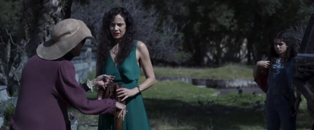 Исаак Эсбан, кстати, хоть и неизвестный у нас автор, но он любимец многих фестивалей за свои опыты именно в жанре хоррора и фантастики, основанной на идее параллельных вселенных. Он работает либо с фольклором, либо пытается перенести персонажей в альтернативную реальность. И если знать об этом, то на «Ведьму» становится проще смотреть. Нала в исполнении фактурной и интересной актрисы Паолы Мигель, оказываясь в бабулином типичном богатом мексиканском доме, словно переносится в иной мир, который должен как минимум отучить ее требовать круглосуточного доступа в интернет в любой точке земного шара. Как максимум - раскрыть ей правду собственного происхождения. Ну а как среднее арифметическое - дать возможность ей пройти путь становления и взросления. Ведь капризы и эгоцентризм часто ассоциируются с детским поведением, а самоотверженность и готовность самостоятельно исследовать новое - со взрослым.