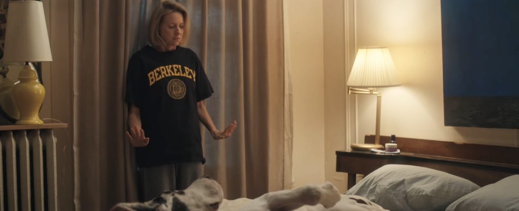 Режиссеры выстраивают фильм вокруг голоса Айрис за кадром, включая ее воспоминания об Уолтере, в то время как он изредка появляется во флэшбеках. Потрясающе естественно играющая Наоми Уоттс находит нужный тон: грустный, но не мрачный, задающийся вопросом, почему Уолтер покончил с собой и почему он оставил ей собаку. Она сначала не хочет брать Аполлона, хотя бы потому, что в ее доме не разрешают держать собак. Вдова Уолтера, Барбара (Нома Думезвени) - также известная как Жена номер три - говорит, что это потому, что Айрис живет одна и любит животных. Но никто, наверное, не думает, что это реальное объяснение.
