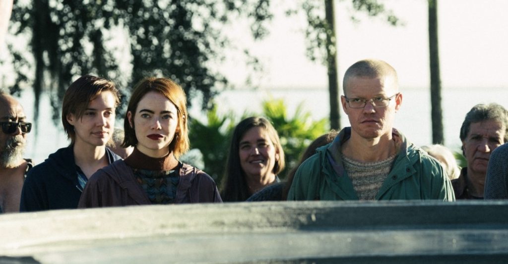 В открывающем сегменте мужчина (Джесси Племонс) готов пойти на все ради своего благодетеля (Уиллема Дефо): 50 оттенков жертвенности в обмен на один покровительственный взгляд. Во второй - супруг (опять Племонс) подозревает, что вместо жены (Эмма Стоун) потерявшейся где-то в объятиях дикой природы, спасатели эвакуировали похожее, но совершенно чуждое существо.