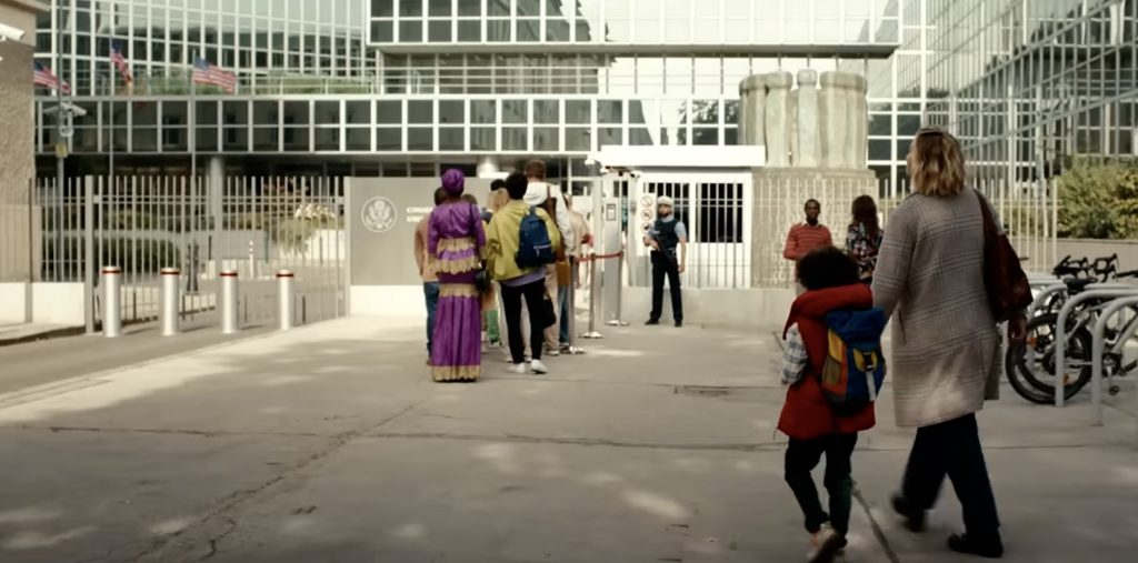 ВПЕЧАТЛЕНИЯ И АКТЕРЫ: Сара (Жанна Гурсо) - бывшая солдат спецназа, служившая вместе с мужем-американцем в Афганистане. Она страдает от посттравматического стрессового расстройства с того времени и часто вспоминает прошлое. Ее муж погиб в засаде вместе с восемью другими солдатами. Выжила только Сара, которая в то время была беременна. Ее сыну Джошу (Риксон Гай да Силва) сейчас около шести лет. Сара отвозит Джоша в американское посольство во Франкфурте, чтобы оформить необходимые документы, которые позволят им выехать в США и дать Джошу возможность встретиться с его семьей, а Саре - устроиться на новую работу в качестве сотрудника службы безопасности. Она оставляет Джоша в игровой комнате, чтобы он взял кофе из автомата. Но, когда Сара возвращается, его там уже нет. Она просит помощи в посольстве. Но сержант Донован (Кайоде Акиниеми) и региональный офицер безопасности Эрик Кинч (Дугрей Скотт) показывают ей видео с камер видеонаблюдения и пытаются убедить ее, что она пришла сюда одна. Они пытаются удержать ее в комнате, прежде чем передать немецкой полиции. Но Сара не верит им, не собирается поддаваться газлайтингу и сбегает…