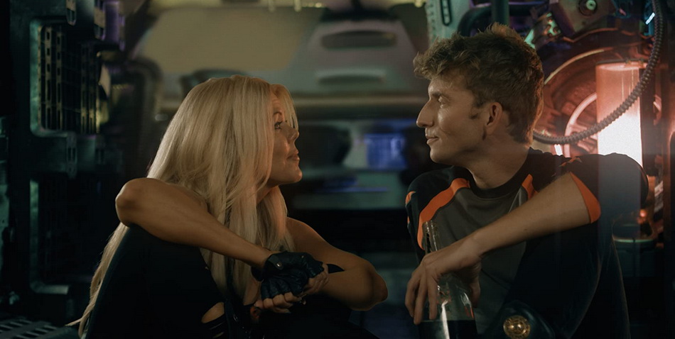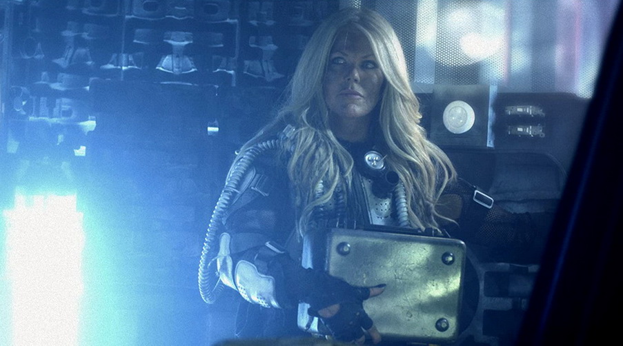 Честно говоря смотреть на 54-летнюю Трэйси Бердсалл приятно - нордический тип, крупные формы, стильный кожаный прикид и бурнус...Но в картине с небольшим бюджетом (3,8 млн.$) имеются также все приметы саги "Звездные войны", пускай даже в бюджетном варианте. Космические шаттлы и корабли, боевые дроны и более крупные роботы иронии не вызывают, мониторы компьютеров горят, лампочки мерцают. Маленький шарообразный робот Хогланд выглядит родным братом R2-D2. При подлете к планете Абисс, вездесущий И.Г.О. начинает сканировать команду Сиенны и с ней, полу-роботом, ничего не случается. В отличие от секс-рабыни Риханны - на предложение Блистера отключить её, она отвечает: "Уже поздно, меня будто футбольная команда отымела".