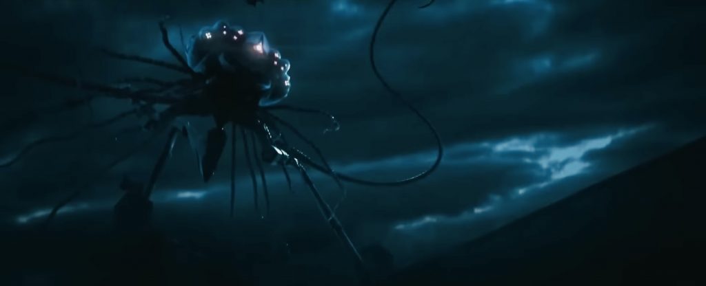Из раскрывшегося метеорита являются неплохо сгенерированные уэллсовские спруты на ходулях, испепеление народа дано на пределе возможностей современных GGI. Ребятам удается спастись, и начинаются их приключения авторства уже Сайеда-Джолиффа. Так как режиссер фильма признанный мастер по визуальным эффектам таких шедевров, как "Интерстеллар" или "Тор-2: царство тьмы", то самое впечатляющее в его новинке - зрелища устрашающих треног, буйствующих на фоне кровавого неба.