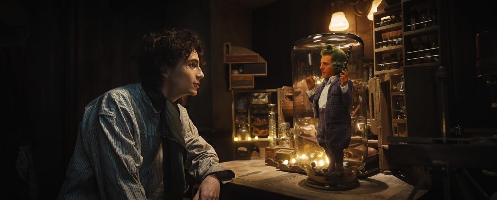 О ЧЕМ КИНО: Вилли Вонка (Тимоти Шаламе) приехал в Лондон, чтобы открыть свой первый магазин шоколада. Он планирует разместить его в Galleries Gourmet, огромном и роскошном торговом центре, в котором уже расположены магазины трех главных шоколадных мастеров города: Слагворта (Пэтерсон Джозеф), их главаря со змеиной ухмылкой; сноба Фикельгрубера (Мэттью Бэйнтон), которого «выворачивает» каждый раз, когда слышит слова «бедные»; и напыщенного Продноуза (Мэтт Лукас). На счету Вилли всего 12 серебряных соверенов. Но Вонка знает, что как только люди попробуют его шоколад, у него появятся деньги, и мечта открыть магазин своей мечты тут же сбудется. Однако троица злодеев решает остановить Вилли, используя начальника полиции (Кигэн-Майкл Ки), тупого продажного алкоголика. Как будто этот шоколадный синдикат не был достаточным испытанием, судьба приводит Вилли в ночлежку миссис Скраббит (Оливия Колман), которая заманивает простаков в ловушку пожизненного контракта, запирая их в подвале как рабов. Вилли удается сбежать, спрятавшись в тележке для белья. Он объединяет в команду других жертв миссис Скраббит - печальную сироту Нудл (Кала Лейн) и бровастого бухгалтера Абакуса (Джим Картер). Он также сталкивается с Умпа-Лумпа (Хью Грант) - воришкой-лиллипутом с оранжевой кожей, длинными зелеными волосами и внешностью аристократа.