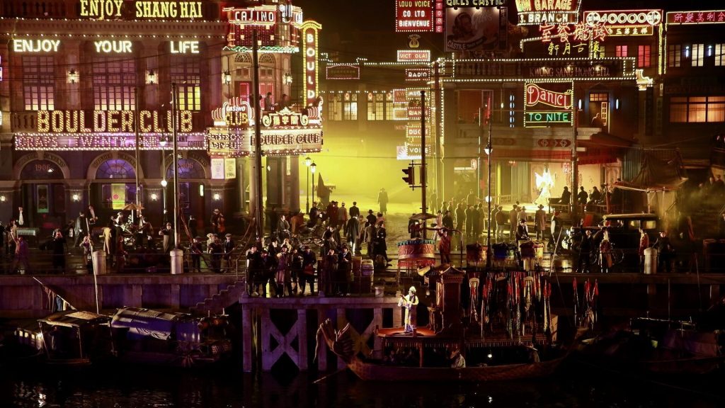 Особенно живописно показывают «Международный сеттльмент». На одном берегу реки - ад войны, кровь и руины, на другом - горящие рекламы, казино, рестораны и мирная жизнь. Зеваки, крупье и официанты, толпясь на набережной, с любопытством следят за борьбой не на жизнь, а на смерть - такой расклад кажется слишком уж надуманным, нарочно изображенным создателями фильма. Однако действительность, похоже, в очередной раз оказалась более странной, чем любой вымысел. И все-таки метафора тут есть: трудно не почувствовать укоризненную интонацию в том, как изображает Гуань Ху наблюдателей из западного мира. Некоторые репортеры даже расположились в дирижабле, в безопасной недосягаемости для пуль и снарядов, и разглядывают сражение, будто спортивный матч. Однако к концу битвы большинство гражданских все-таки проникаются сочувствием к китайским защитникам и, как могут, помогают им. Но возможен и другой взгляд. В толпе зрителей камера то и дело выхватывает актеров - в гриме, с ярко раскрашенными лицами. На сцене они показывают спектакль по мотивам героического китайского эпоса. Да и весь Сеттльмент с его огнями напоминает театральную сцену с огнями рампы. С другой стороны - зрелищем, буквально «театром военных действий» становится драма вокруг склада «Сыхан». Два театра друг напротив друга, два зеркала страстей человеческих - это вполне развитие шекспировской темы. (Фёдор Дубшан)
