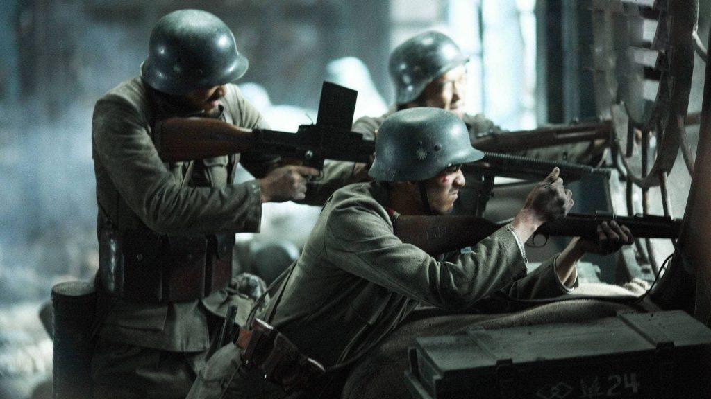 Фактически бойцов было всего четыреста с небольшим - против двадцати тысяч японцев. Но поскольку в начале битвы за Шанхай в батальоне было восемь сотен человек, в национальный миф вошли они именно под таким названием. Собственно, и весь фильм состоит из таких парадоксов, балансирует на тонкой грани между эпосом, пропагандой и лирикой. С одной стороны, это вполне себе ожидаемый блокбастер, полный милитаризма, превозмогания и горделивой патетики. А с другой (возможно, на наш не-китайский, непривычный взгляд) — картина, полная совершенно неожиданных смысловых ракурсов. Вот батальные сцены, в которых всё дрожит и взрывается, льется кровь и отлетают конечности с голливудским сочным размахом не хуже «рядового Райана» или, если вспоминать картины поновей, «1917». Тут и лобовые атаки, и налеты авиации, и ночные диверсии... Недаром к съемкам были привлечены западные специалисты по спецэффектам и постановке экшена. За визуальные эффекты отвечал австралийский супервайзер Тим Кросби, номинант на премию Оскар за лучшие визуальные эффекты в картине «Люди Икс: Дни минувшего будущего». Но как-то не удается забыть, что это, в сущности, история военного поражения. Через четыре дня защитники склада отступили и были арестованы британскими властями, а затем японцами. Конечно, сюжет о безнадежной обороне храбрецов, засевших в осажденной крепости, со времен гомеровских и борхесовских архетипический, и в военном кино абсолютно знакомый: взять хотя бы нолановский «Дюнкерк». Непривычно, чтоб в этом скорее бравурном жанре столько рассуждали о смерти, взывали к ней, готовились - это что-то скорее из восточного менталитета, понятное, наверное, оппонентам-японцам с их «путем самурая». Недаром в конце фильма японский генерал и китайский полковник, встретившись на переговорах, находят, в общем, определенное взаимопонимание: судьба одних - нападать, а других — защищаться и умирать, и в этом - дао.