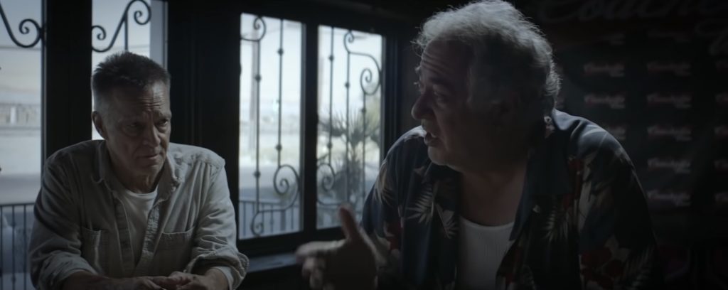 Наконец, о Микки Рурке. Как и следовало ожидать, многих заинтересует появление актера на экране, но он также появляется в кадре редко, зато в самые решающие моменты. Гротескный характер и грязноватые речи его персонажа Патрика, кажутся немного устаревшими, но с точки зрения контекста это выглядит уместным. Лицо Микки Рурка в наши дни чем-то напоминает расплавленную свечу и он кажется неспособным передать даже самые простые человеческие эмоции. Наверное, поэтому Патрик все время носит солнцезащитные очки и, сидя на кровати, в полутьме играет с щенками. В какой-то момент в голову может даже прийти мысль, что нас ждёт некий трэшевый вариант «Джона Уика», и что он из собачника превратился в линчевателя не просто так. Жалко, что карьера Рурка - когда-то столь многообещающая - за последнее десятилетие или около того резко пошла на спад. Тем не менее, его все ещё помнят и он выглядит пугающим плохим парнем.