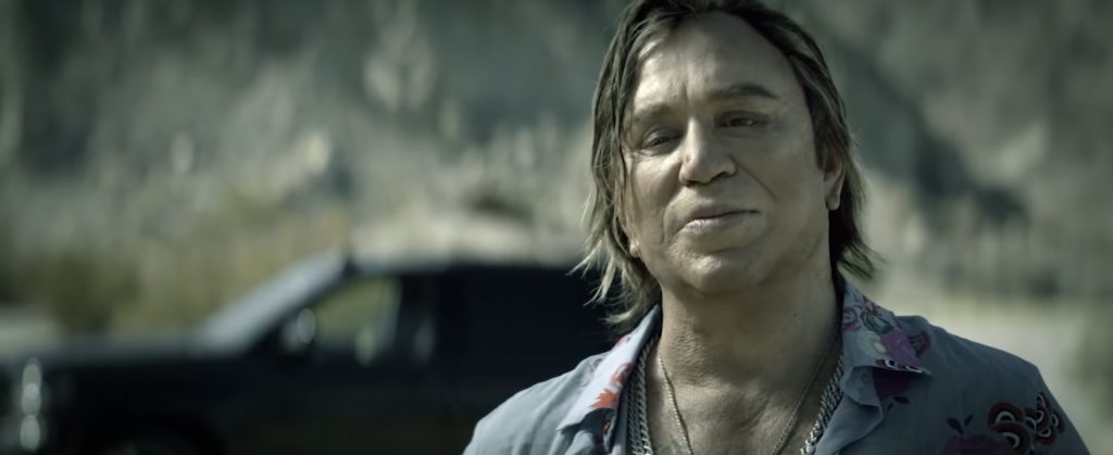 Наконец, о Микки Рурке. Как и следовало ожидать, многих заинтересует появление актера на экране, но он также появляется в кадре редко, зато в самые решающие моменты. Гротескный характер и грязноватые речи его персонажа Патрика, кажутся немного устаревшими, но с точки зрения контекста это выглядит уместным. Лицо Микки Рурка в наши дни чем-то напоминает расплавленную свечу и он кажется неспособным передать даже самые простые человеческие эмоции. Наверное, поэтому Патрик все время носит солнцезащитные очки и, сидя на кровати, в полутьме играет с щенками. В какой-то момент в голову может даже прийти мысль, что нас ждёт некий трэшевый вариант «Джона Уика», и что он из собачника превратился в линчевателя не просто так. Жалко, что карьера Рурка - когда-то столь многообещающая - за последнее десятилетие или около того резко пошла на спад. Тем не менее, его все ещё помнят и он выглядит пугающим плохим парнем.