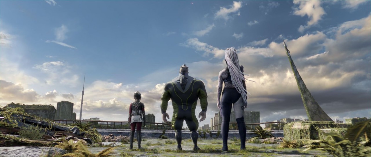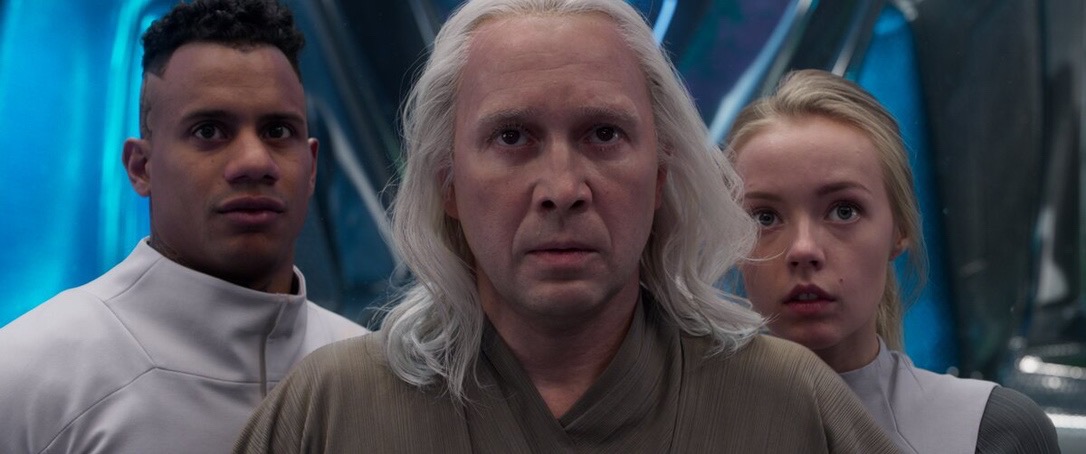 Фильм начинается с бодрого закадрового голоса Ивана Охлобыстина на фоне сумбурной анимации, и если вы этот вводный брифинг пропустите или не дай бог недостаточно внимательно выслушаете, то пеняйте на себя. Потому что разобраться, что к чему, будет нелегко - "Вратарь галактики" не утруждает себя выстраиванием повествования традиционными кинематографическими средствами, а с ходу швыряет маленького зрителя (возрастной рейтинг - 6+) в перегруженный деталями аляповатый мир.Суть, если постараться максимально сжато её изложить, в следующем. Будущее (не такое далёкое, но выглядит как очень далёкое), Луна раскололась, вследствие чего наступил постапокалипсис. Зато у некоторых землян, в количестве трёх человек, открылись способности к телепортации, и они их используют, чтобы играть в космобол - новый вид спорта, невероятно популярный - взрывающимися мячиками-волноедами (да) против разных причудливых инопланетян. Но постоянно проигрывают, так как по правилам нужно четыре игрока. Не играть при этом почему-то не вариант. Тем временем глубоко под землей сидит злодей и творит злодейства. А также есть избранный, который тоже открывает в себе способность к телепортации и должен теперь спасти мир.История стандартная, два притопа три прихлопа, для детского кино, допустим, сойдет. Но подаётся она так, будто рассказывает её гиперактивный ребёнок, постоянно отвлекаясь на всё подряд и перескакивая с пятого на десятое. То на красномордых гуманоидов с лицами Гоши Куценко, то на Светлану Пермякову в невообразимо вырвиглазном макияже, то на летающих мимимишных роботов, то вот этого болельщика крупным планом надо показать, то этого, то вон того, то какой-то галактический совет появляется, то целый галактический флот буквально на минуту зачем-то прилетает - и ничто из перечисленного никакого отношения ни к чему не имеет. Просто у кого-то нет ни малейшего представления о том, как делать масштабную космическую фантастику. И вместо того, чтобы попытаться вникнуть, как она делается, этот кто-то понадергал того и сего по чуть-чуть из всех доступных примеров.
