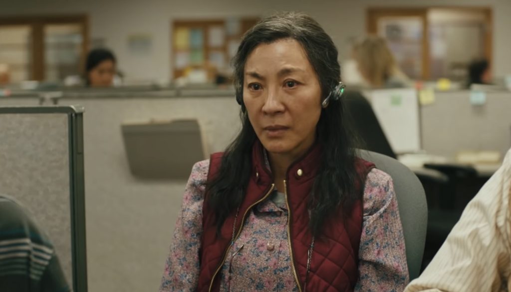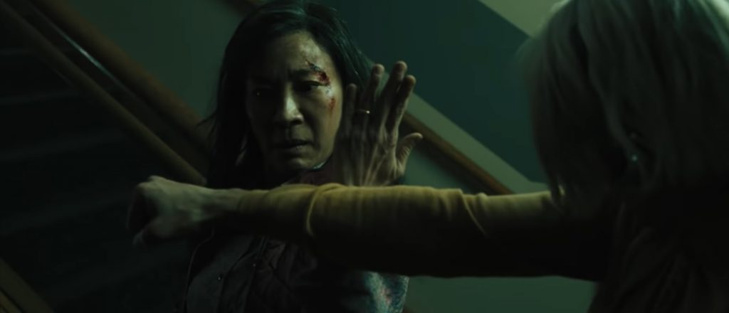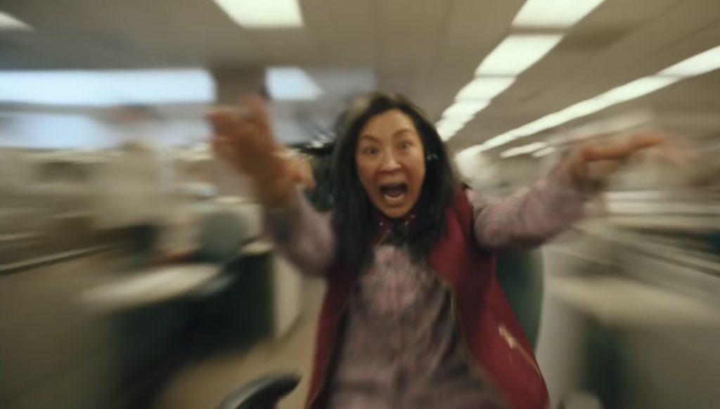 Механизм переходов пересказывать нет смысла - прием такой абсурдный и одновременно непробиваемо логичный, что лучше увидеть своими глазами, как без преувеличения великая Мишель Йео ищет изъяны и мелкий шрифт в теории вероятности. Психологам бы это понравилось: отправной точкой каждого нового прыжка в иную жизнь становится выход из зоны комфорта - сделай то, чего никто не ждет. Хозяйка прачечной подгружает в свою налоговую реальность других Эвелин из мультивселенной безумия - знаменитую артистку, мастерицу кунг-фу, повара, жену и мать. И приходит к неутешительному выводу: сказка об упущенных возможностях закончилась тем, что она стала худшей версией себя. Но и это не фиаско - быть первой с конца тоже достижение, а неудача - опорная точка для победы.