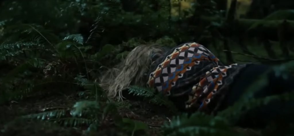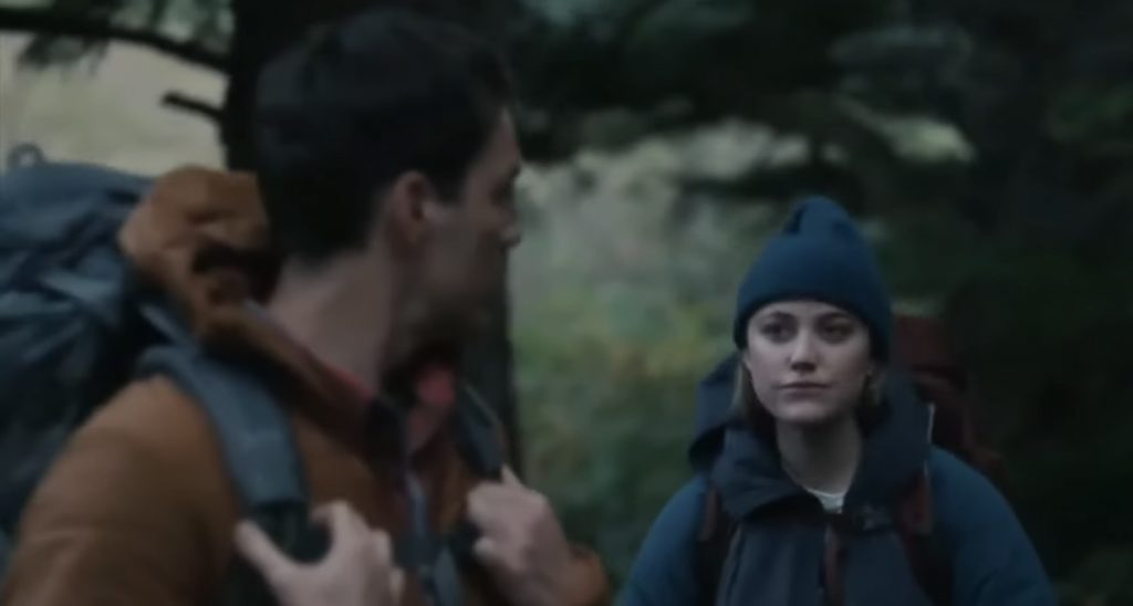 О ЧЕМ КИНО: Рут (Майка Монро) и Гарри (Джейк Лэси) встречаются уже шесть лет. Очередную красивую осень они решили отпраздновать пешей прогулкой по лесам - перехватили пару бургеров в придорожном кафе, оставили машину у входа на тропу и углубились в девственную глушь. На путешествии настаивал парень, сама девушка от него явно не в восторге: пока он с чувством превосходства готовит обед на костре, она пытается собрать палатку и явно тревожится. Совместный кемпинг омрачает попытка Гарри сделать девушке предложение. Ее охватывает паническая атака, и она едва не сваливается с обрыва. И это не единственные проблемы пары: по ночам у их палатки раздается странный шум, а в лесу они находят обезображенного оленя, который умер какой-то жуткой смертью. На этом сюрпризы не заканчиваются. Рут наткнется на пещеру, откуда она выйдет в совершенно другом состоянии. Гарри попытается добиться от нее хоть какой-то реакции, но молчаливая и шокированная девушка лишь попросит вновь сделать ей предложение на краю обрыва. Закончится это, естественно, трагедией...